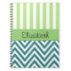 Blue Zigzag, Chevron, Green Stripes, Your Name Notebook