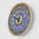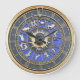 10.75” round acrylic wall clock with an image of a blue and gold zodiac wheel.