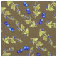 Blueberries Stemmed Leaves Brown Dirt Background has a basic repeat pattern, turned on a 45 degree angle, of blueberries on green stemmed leaves, with a dirt brown background. Perfect for berry picking memories, curtains, cushions, kitchen towels, and more, or line your basket with the fabric, or make a lined bag for holding your fresh picked treats!