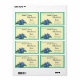 Bunch of ripe blueberries with leaves behind them are tucked into the left lower corner of this label  with a background of pale yellow all surrounded by a border and background of moderate turquoise green which make this a perfect label to use on your jars of homemade blueberry jam or preserves. The text is in template form so you can change it to whatever you wish.