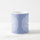 This white mandala sits on a dusty periwinkle background. The colours are soft and relaxed. Part of the Mola Mandala Collection.