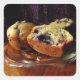This stickerr features mouth-watering blueberry muffins arranged on a shiny glass plate on a wooden table. The background is draped in a deep purple fabric.