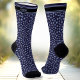 Personalized Blueberry Themed Socks with watercolor blueberries on the navy blue background. Easily personalize the name, type in just a monogram or leave it blank. - Kate Eden Art