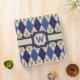 Argyle goes 8-bit with this preppy navy blue, denim blue, and khaki colour scheme with a rich brown contrast stitch creating a perfect look for lovers of this classic pattern. Customize the monogram with the appropriate initial for a personalized touch.