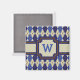 Argyle goes 8-bit with this preppy navy blue, denim blue, and khaki colour scheme with a rich brown contrast stitch creating a perfect look for lovers of this classic pattern. Customize the monogram with the appropriate initial for a personalized touch.