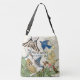 Darling collage of vintage botanical fine art of John Audubons' Bluebird Birds, with a Swallowtail Butterfly, Foxglove Flowers, lots of Ferns and French Ads, Hummingbird Birds with Thistle Flowers, on a background of faux handmade paper, is on this awesome All Over Print Tote Bag. Images are public domain due to expired copyright. Collage is by me.