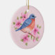 This ceramic ornament has my painting of a bluebird on a branch with pink flowers. The ornament is 2 5/8" and comes with a ribbon. You can add text on the back to personalize.