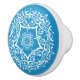 This white mandala sits on a true blue background. The colours are very calming and peaceful. Part of the Jarn Mandala Collection.