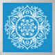 This white mandala sits on a true blue background. The colors are very calming and peaceful. Part of the Rosenn Mandala Collection.