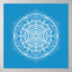 This white mandala sits on a true blue background. The colours are very calming and peaceful. Part of the Hyil Mandala Collection.