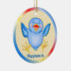 Adorable Bluebird jumping in joy. Colourful matching border. Text says Happiness Is