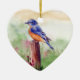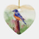 From an original watercolor painting by Brenda Thour of a beautiful bluebird sitting on a post in blues, greens, oranges, browns with a splash of red flowers at the base of the post. Copyright by Brenda Thour 2009.