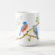 Eastern bluebirds are only found in North America. While the female bird's colours are not as bright as the male's colours, both display fascinating blue and reddish-orange throat and breast with a white underside. The bluebirds on this product were lovingly created by W.B. with Prisma colours.