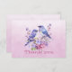 A pair of beautiful bluebirds sitting on a branch of blossoms.