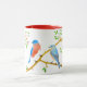 Eastern bluebirds are only found in North America. While the female bird's colours are not as bright as the male's colours, both display fascinating blue and reddish-orange throat and breast with a white underside. The bluebirds on this product were lovingly created by W.B. with Prisma colours.