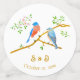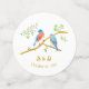 The birds remain still, sharing the moment—two gentle figures framed by the delicate colors of spring, embodying both contrast and harmony in the awakening season.