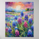 A modern impressionist-style painting of bluebonnets, the iconic Texas wildflower, rendered in stunning blue and purple hues with abstract brushstrokes. The expressive strokes and vibrant colours capture the natural beauty and grace of these blooms, creating a lively and textured interpretation of the Texas landscape. This contemporary piece is both bold and serene, perfect for bringing a touch of nature indoors.
