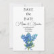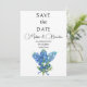 Bluebonnets, watercolor blue floral Wedding save the date. Texas state flowers. Unique, hand painted artwork by artist Monika Howarth. You can personalize it with your details.