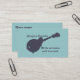 One side of this card features the silhouette of a mandolin, and the words "Bluegrass Mandolin: All the percussion you could ever need." On the other side, replace the existing text with your own.