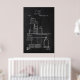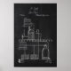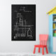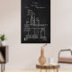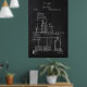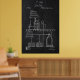 An original diagram of beer making equipment patented in 1844 designed for wall art on a chalkboard background.