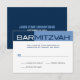A reply card designed to look like the masthead of a magazine starts the celebration for your Bar Mitzvah boy. This response card features the title "Bar Mitzvah" in a cobalt and light blue panel at the top. Customized reply text prints below. Add the Bar Mitzvah's name and event date or other information on the reverse. Contact this shop if you need further customization or want to add a Hebrew name. Available in alternate colours with options for the Bat Mitzvah.