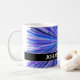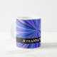 This eyecatching mug design features a pattern of lines coloured various shades of blue or purple that appear to be bursting out from a central point. It also features a customized name.