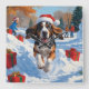 Bluetick Coonhound Christmas Festive Snow Scene Square Wall Clock