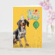 Bluetick Coonhound Dog Party Hat Yellow Birthday Card