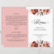 This elegant quinceañera program features gorgeous hand painted delicate flowers and foliage in a combination of blush pink, dusty rose, peach, burgundy, maroon and sage tones. Use of modern calligraphy details. Left sides in elegant blush pink background colour. Personalize the program in both sides, adding any details or message you like. Also available in Spanish. NOTE: this program will arrive flat and requires folding down in the middle to assemble. The default value program is recommended.