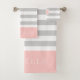 Blush and Grey Stripes Monogram | Editable Colours Bath Towel Set