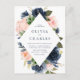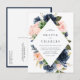 Blush and Navy Blue Floral Frame QR Code Wedding Invitation Postcard