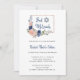 These trendy and stylish Bat Mitzvah invitations feature hand drawn flowers in navy blue and blush pink watercolors. Plenty of botanical green leaves and foliage decorate the bouquets. There is also a faux rose gold look rectangular geometric frame and modern handwritten script with a blue Star of David.