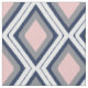 Our chic ikat fabric features a diamond pattern in blush pink, navy blue, and medium charcoal grey for an on-trend palette.