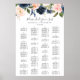 This blush and navy flowers alphabetical seating chart poster is perfect for a floral wedding. This sign can be used to organize your guests alphabetically or by table number. The classic and elegant design features modern watercolor navy blue and blush pink flowers. This wedding poster includes enough room for up to about 120 guests. Make room for more (or less) guests by clicking the "customize" button and decrease or increase the size of the font. In addition to the placement of each guest, personalize this sign with the names of the bride and groom and the wedding date.