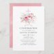 Trendy blush pink and white roses confirmation invitation with accents of rose gold designed to be quickly and easily customized to your event specifics.