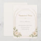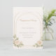 Refined arch engagement theme in soft blush and warm ivory, featuring gold line framing, delicate floral corners, and clean serif lettering. Designed for couples hosting a polished celebration at a venue or home setting with a balanced, modern layout.
