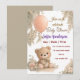 reate a heartwarming first impression with this beautifully designed blush teddy bear baby shower invitation. Featuring an adorable watercolor bear placed at the bottom center, delicate floral accents, and a softly textured pastel balloon, this design blends elegance with sweetness. The gentle blush wash background and clean center space provide the perfect area for adding your personalized event details.