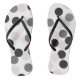 Modern and whimsical flip flops featuring blush and black large dots pattern. Fun and unique flip flops that will be a perfect accent to any outfit. Other colours are available.