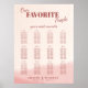 Create a warm and welcoming atmosphere for your guests with these stunning Minimalist Blush & Bloom Bold Script Wedding Seating Charts. Featuring a delicate blush and rose gold watercolor wash with subtle texture, these seating charts add a touch of love and romance to your reception. At the top, "Our Favourite People" is elegantly displayed in bold floral script, followed by "Your Seat Awaits" in the same style. Below, 12 table numbers are clearly listed with ample space for guest names, making it easy for your guests to find their assigned tables. The couple's names in bold script, along with the wedding date, city, and state, are elegantly displayed at the bottom. Customize all the text easily over this template, ensuring a smooth and enjoyable seating experience for your guests.