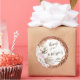Stickers for your favours in a Boho design. Grapevine encircles a calligraphy thank you. Boho palm and phalaenopsis orchid bouquet accent.