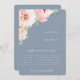 Belle composition florale aquarelle rose blush, faire-part de mariage. Design de typographie blanche moderne et chic. La couleur de fond présentée en bleu poussiéreux peut être personnalisée.