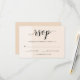 These modern wedding RSVP cards feature soft shades of blush, bisque, and linen with trendy black typography.