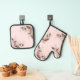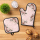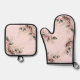 This oven mitt and pot holder set features a charming Christmas holiday pattern, decorated with soft blush watercolors in gentle pink and green hues, and foliage designs interspersed with small speckled gold dots. It's a perfect selection for adding a hint of nature to your kitchen decor.