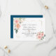 Elegant card design featuring watercolour pink blush cream flowers and green leaves, a faux gold glitter broken frame, floral divider, on a white background. On the back the same flowers bouquets on ocean blue background. Use Personalise tool to add your info, change fonts, font's colours. For matching items, please, visit my Watercolor Flowers Gold Frame Collection.
