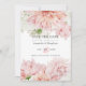 Blush pink and white wedding save the date card. Featured are dahlias, chrysanthemum and roses.