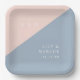 Blush Dusty Blue Minimalist Monogram Wedding Paper Plate