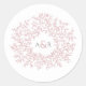 Blush dusty pink circle of leaves monogram wedding classic round sticker