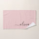Blush Dusty Pink Simple Script Monogram Name bathroom Towels. This makes the perfect sweet 16 birthday, wedding, bridal shower, anniversary, baby shower or bachelorette party gift for someone that loves glam luxury and chic styles.