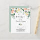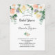 Une invitation à la douche nuptiale fleurie et tendance, rose vif, or rose et blanc. Un arrière - plan blanc classique à l'avant. Décoré de grandes fleurs verdoyantes aux couleurs de l'eau, de fleurs blanches, d'or rose, de rose vif et d'une végétation d'eucaluptus. Personnalisez et ajoutez le nom de la mariée à être et les détails du parti. Texte noir. Retour : arrière - plan vert sauge, design poscard. Conseil : Si vous ne voulez pas qu'il ressemble à une carte postale, cliquez sur customiser, allez à l'arrière et retirez le séparateur et le timbre postal.