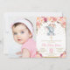Blush Floral Elephant Christening Baptism Photo Invitation